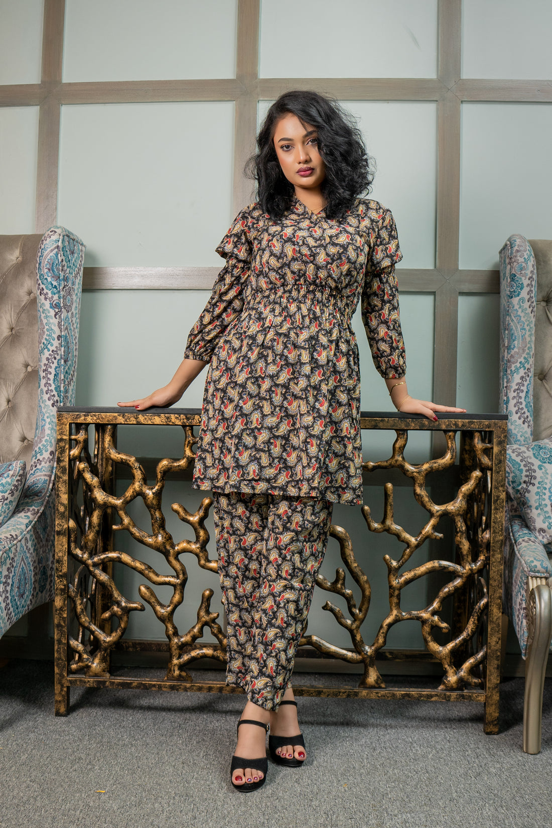 Style Deets Fit Type: Regular Top Length: 22 Neckline: Round Material Composition: Crape Georgette Stretch:...