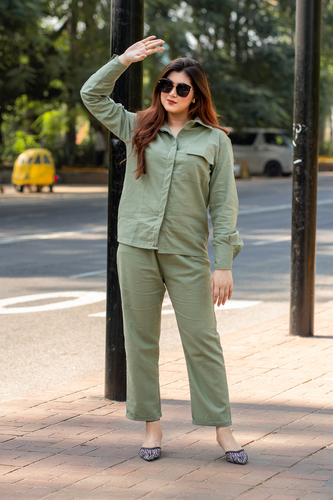 Olive Green Cotton Co-Ord Set for Women
