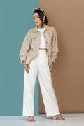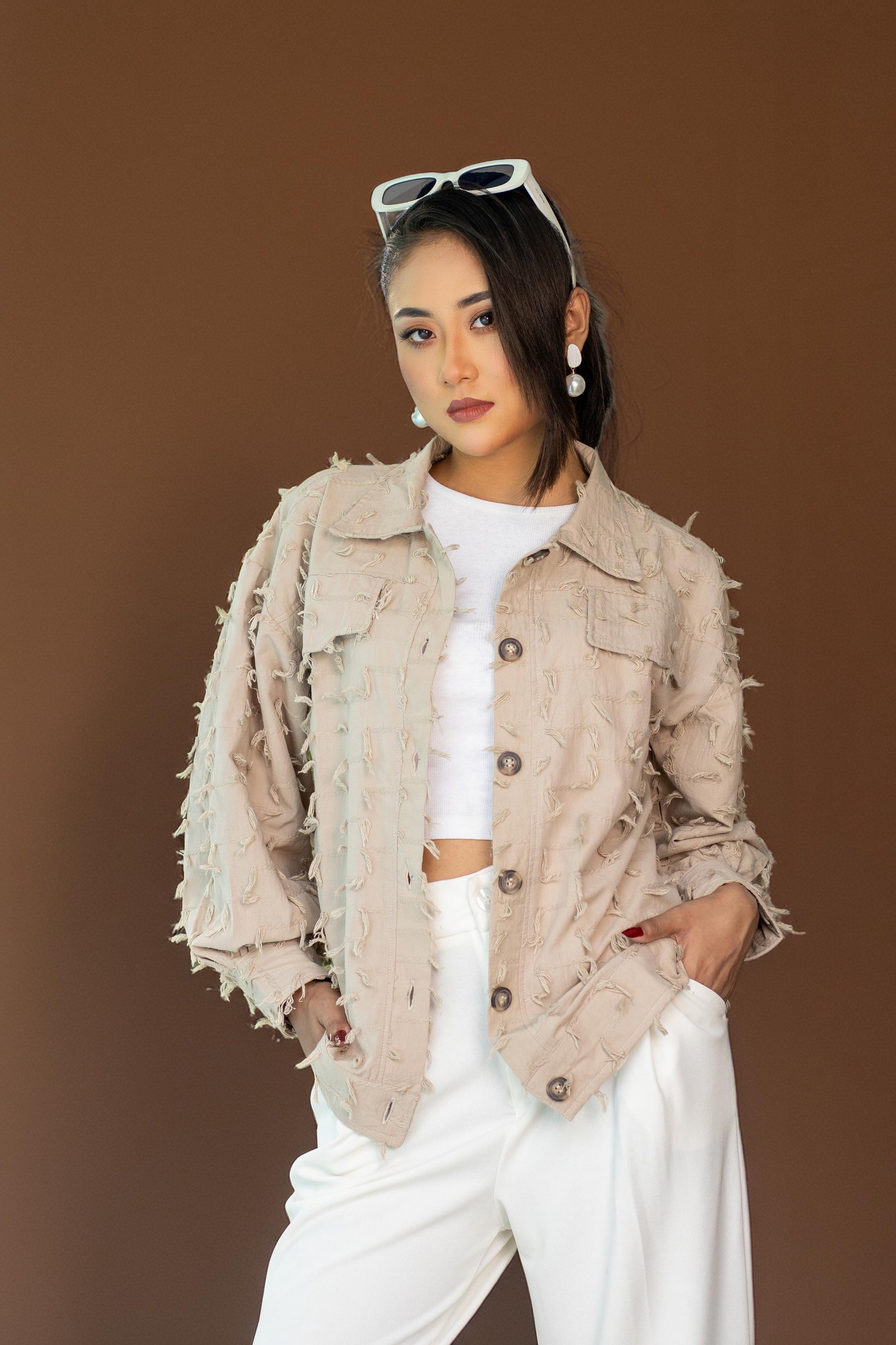 Beige Embroidered Cotton Shirt