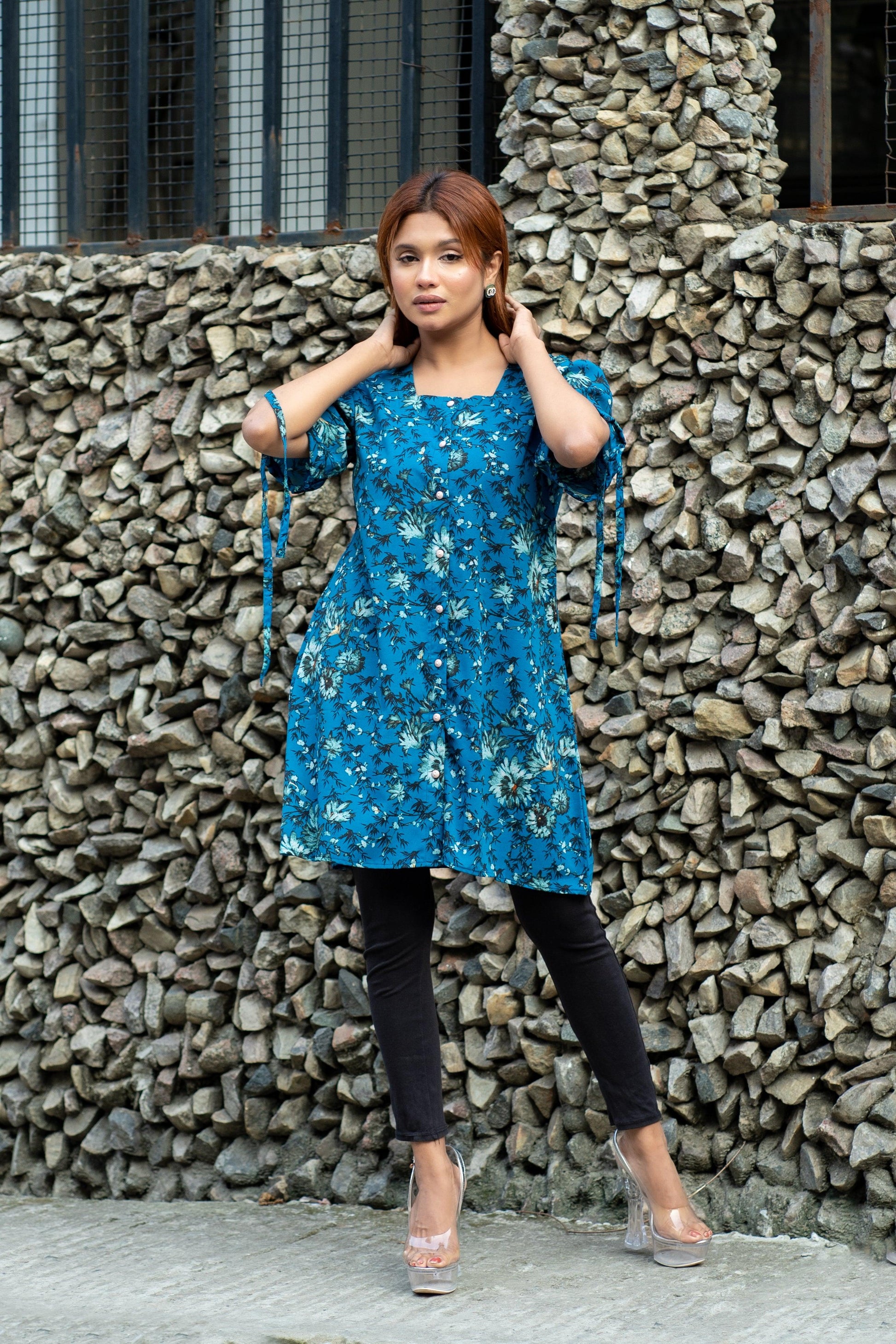 Floral Longline Button-Down Tunic