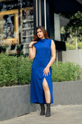 Royal Blue Sleeveless Mock Neck Warp Skirt Gown