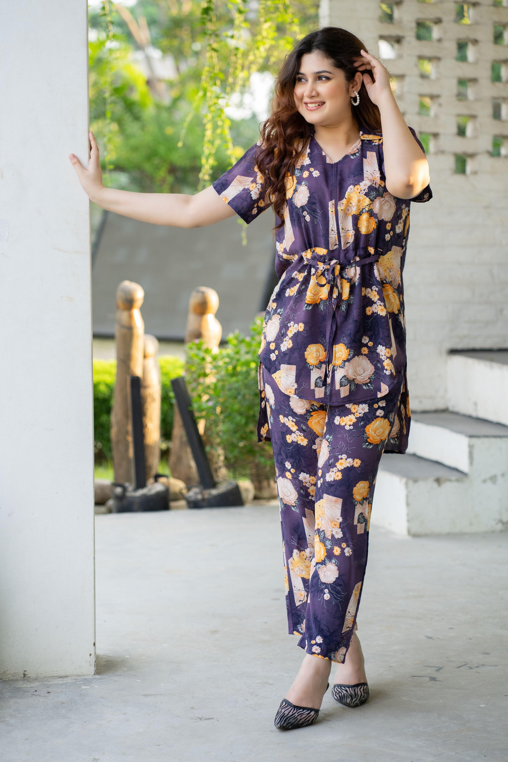 Women's Short Sleeve Floral Patternd Co-Ord Set